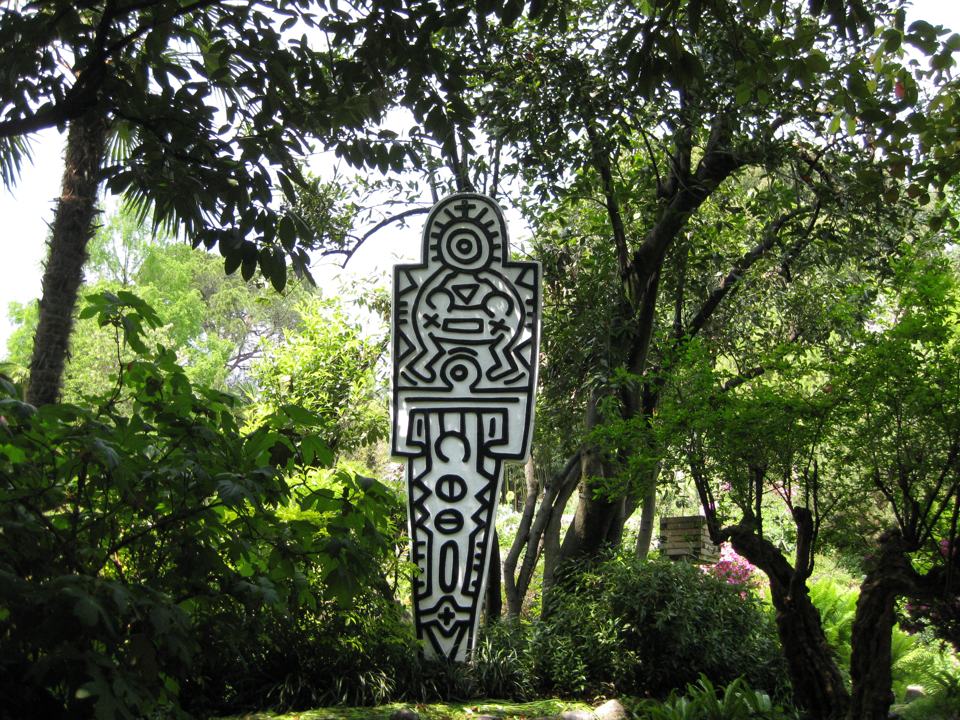 Keith Harings Werk dieses übergroßen Menschen ragt zwischen Palmen und Oliven auf.